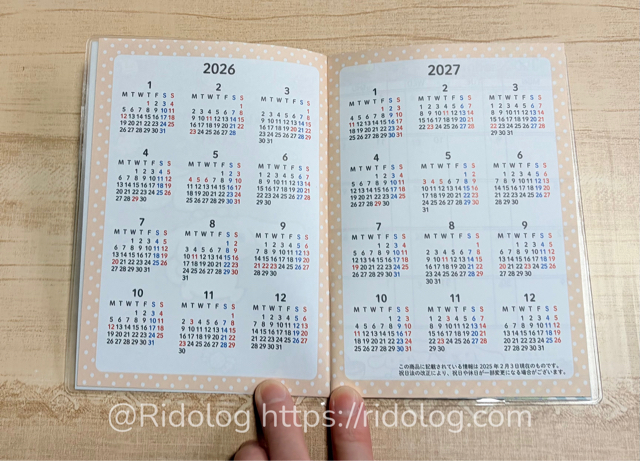 2026年と2027年のカレンダーが載っています。