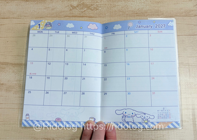 セリア シナモロールA6マンスリー手帳の写真とレビュー