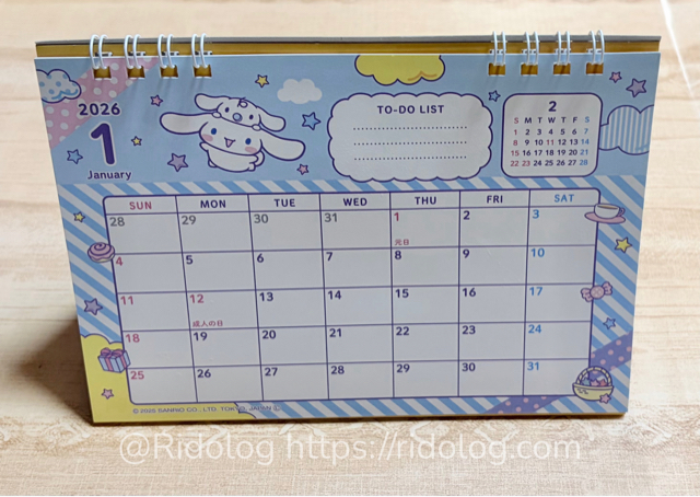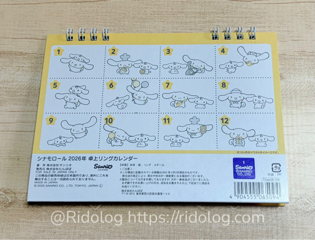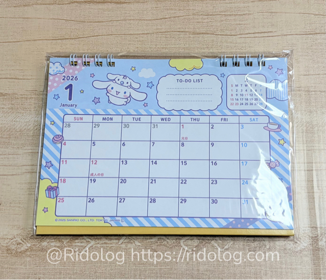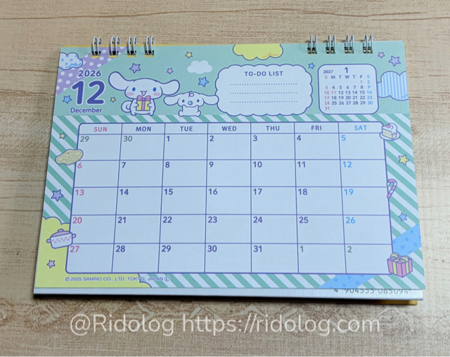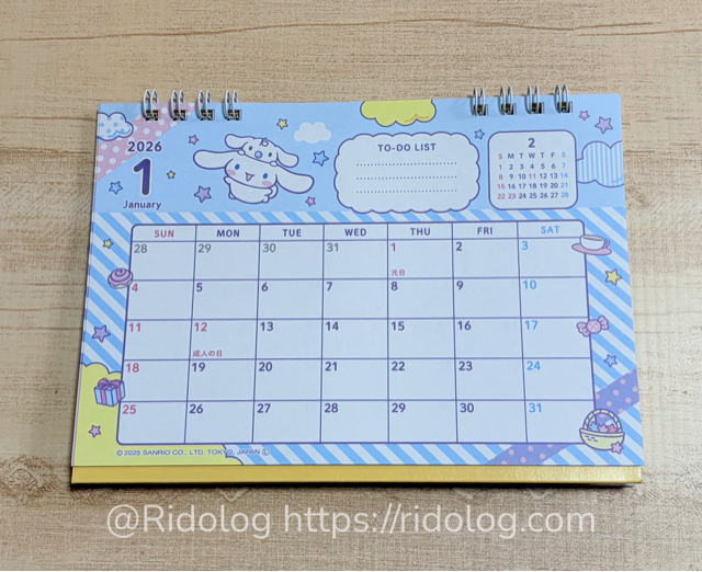 手帳とおそろいのシナモロール卓上リングカレンダー