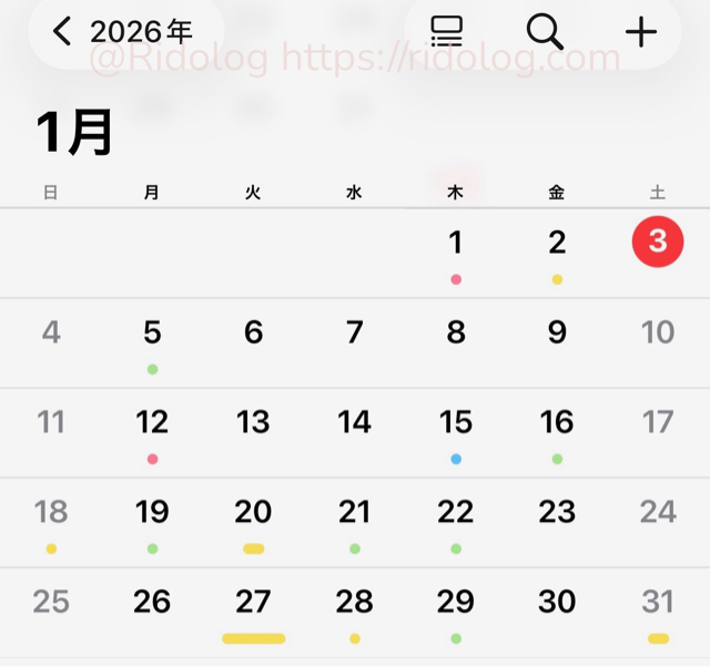 ただiPhoneのカレンダーアプリだとマンスリーの一覧が予定の内容まで見られないのが不便です。